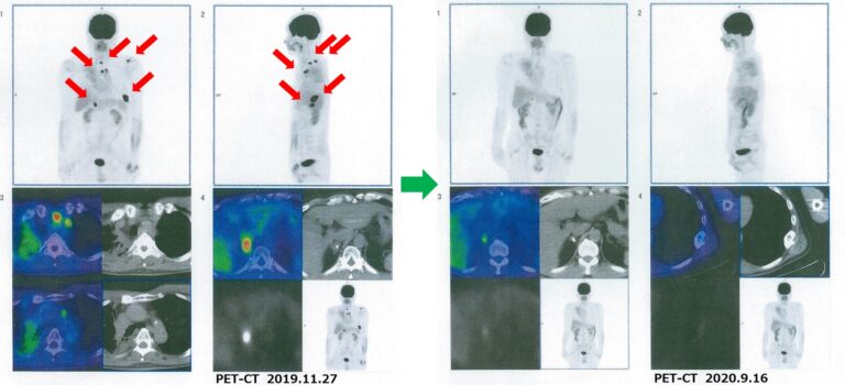 当院の免疫細胞療法のみの単独治療(monothrapy)で全身のがん転移巣(縦隔リンパ節、第1胸椎、左第7肋骨、左肩甲骨、右副腎)が縮小・消退 [Y様 PET-CT 2019.11.27→2020.9.16]